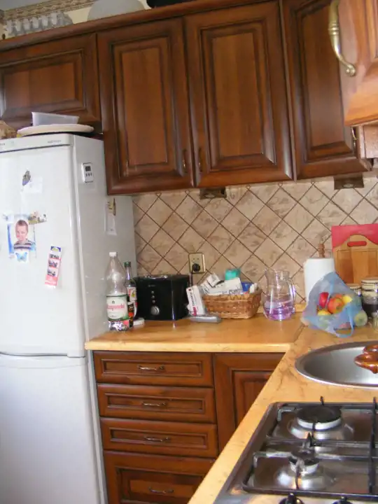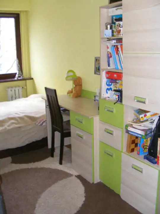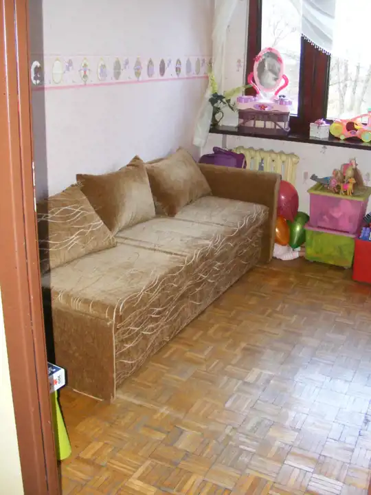 W pokojach na podłogach mozaika parkietowa w kuchni i łazienc e płytki.W cenie mieszkania zostają meble kuchenne.Mieszkanie ma wymienione okna na nowe drewniane.