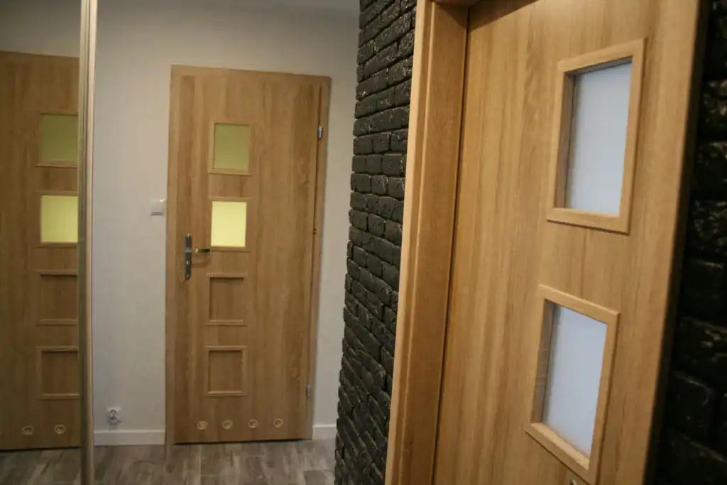 W mieszkaniu wymienione zostały drzwi zewnętrzne (antywłamaniowe) oraz wewnętrzne (z ościeżnicami regulowanymi). Okna PCV.