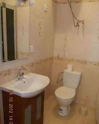 W łazience glazura i terakota. Łazienka połączona z WC - wyposażona w kabinę prysznicową.
