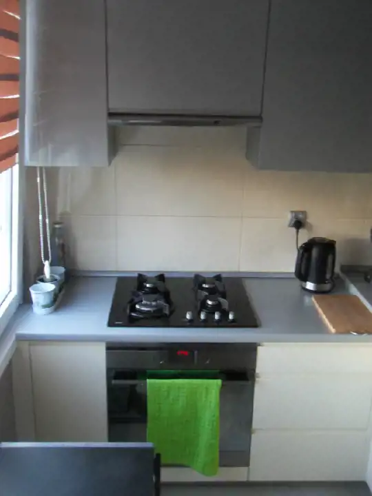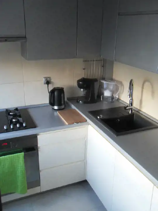 Mieszkanie po remoncie, nowe meble w kuchni pod wymiar wraz ze sprzętem AGD firmy Amica( zmywarka, piekarnik, płyta gazowa, pochłaniacz), zlew granitowy.