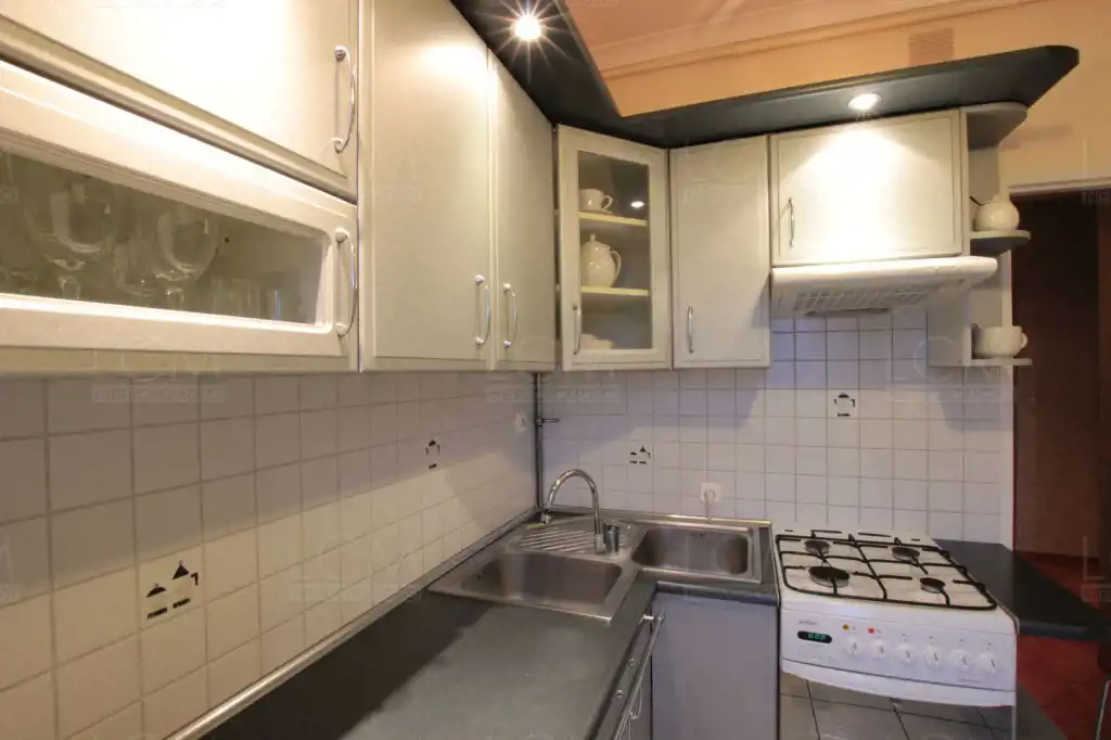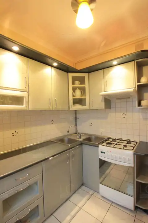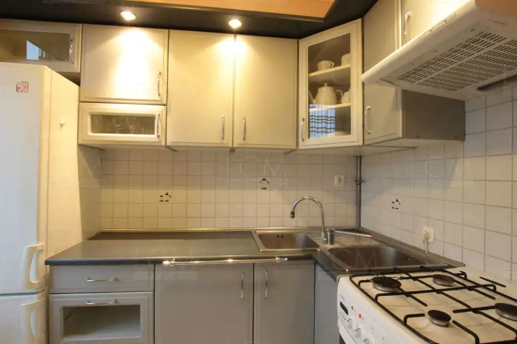 Kuchnia została wyposażona w nowoczesną zabudowę wraz ze sprzętem AGD: (piekarnik, płyta gazowa, lodówka,okap) oraz naczynia.