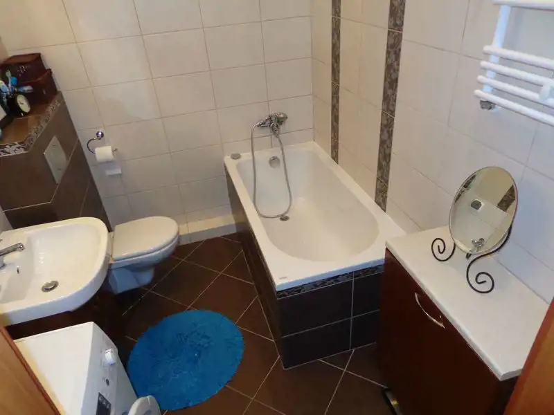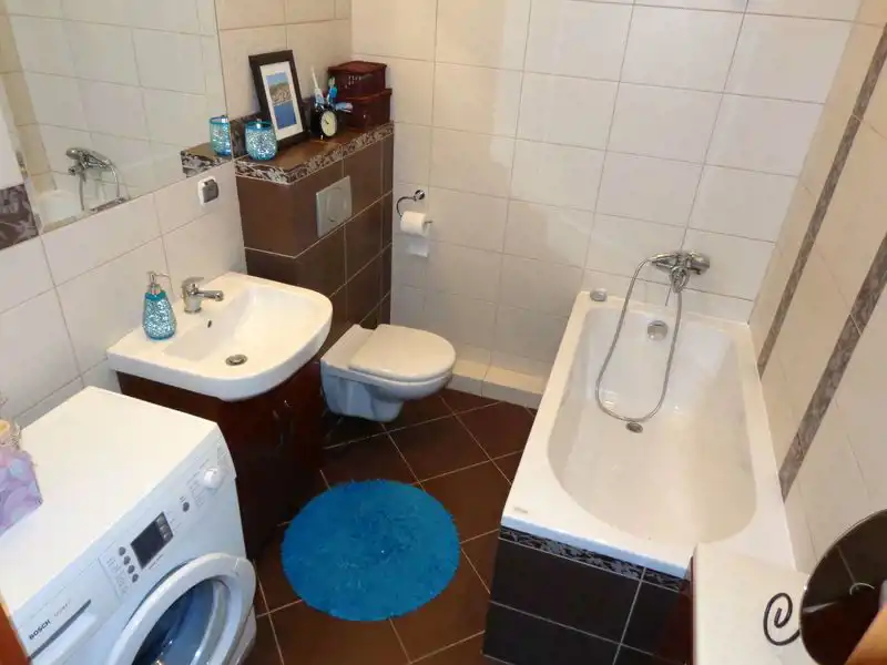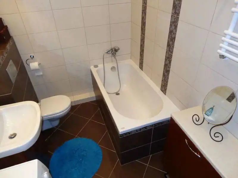 Na wprost od wejścia znajduje się łazienka połączona z WC,. Dzięki połączeniu znajdziesz w niej sporo przestrzeni. Jest ona wyłożona nowej jakości płytkami.