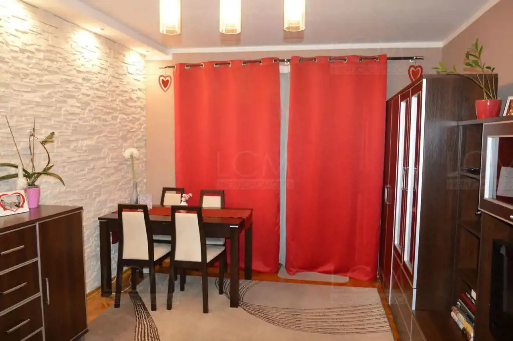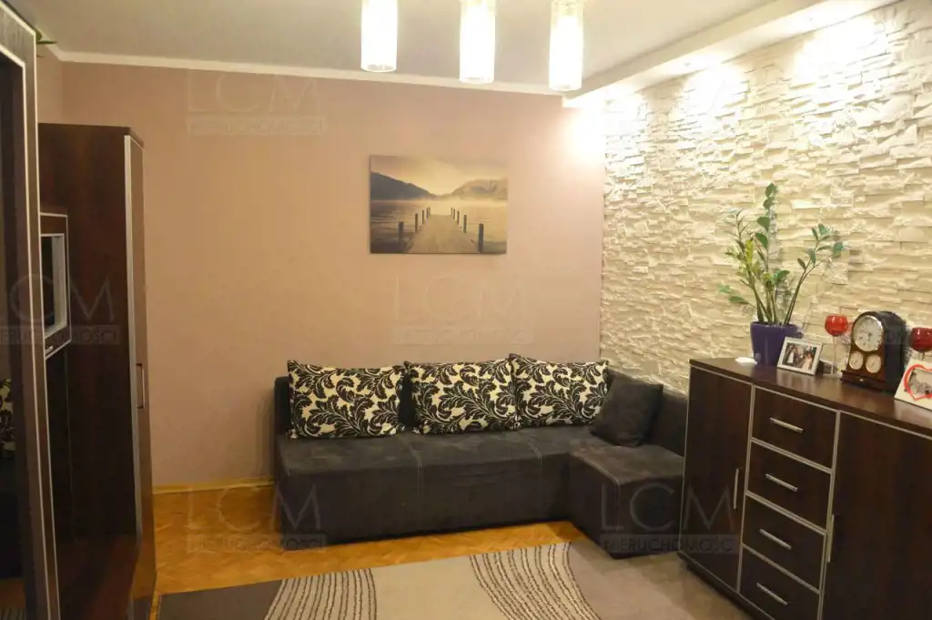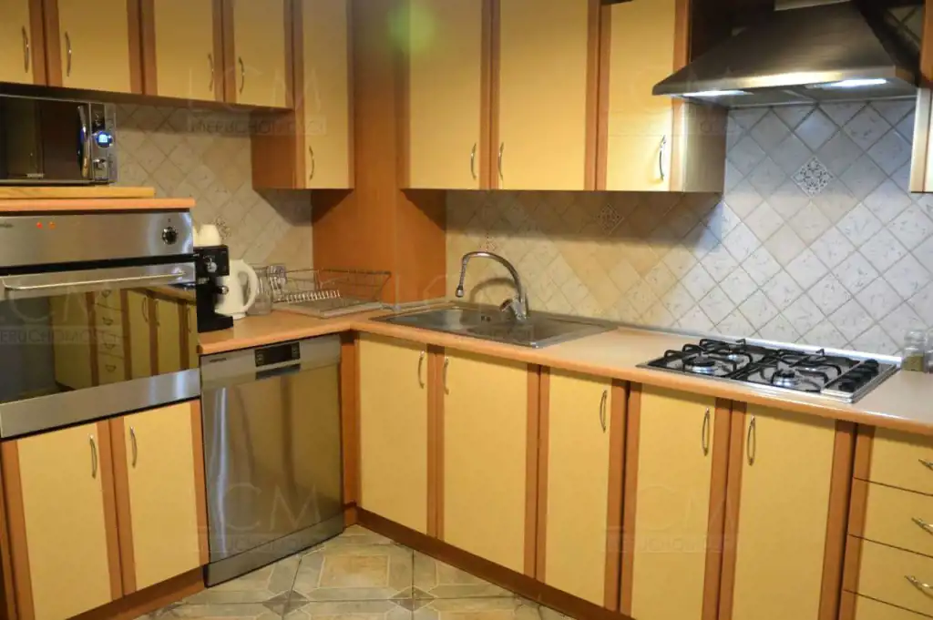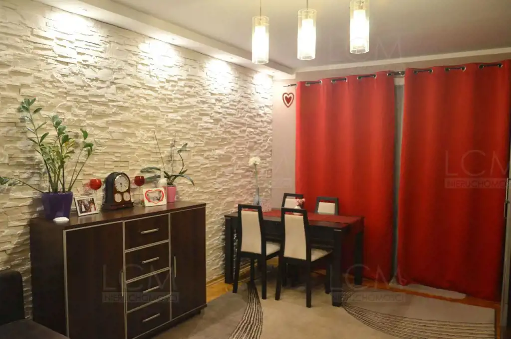 Mieszkanie nie wymaga nakładów finansowych. Na ścianach położono kamień ozdobny i gładzie, na podłogach mozaika parkietowa i terakota. Duża zabudowana kuchnia ze sprzętami - zmywarką, lodówką, płytą gazową. Łazienka wyposażona w prysznic. Wymieniono drzwi wewnętrzne, okna PCV.