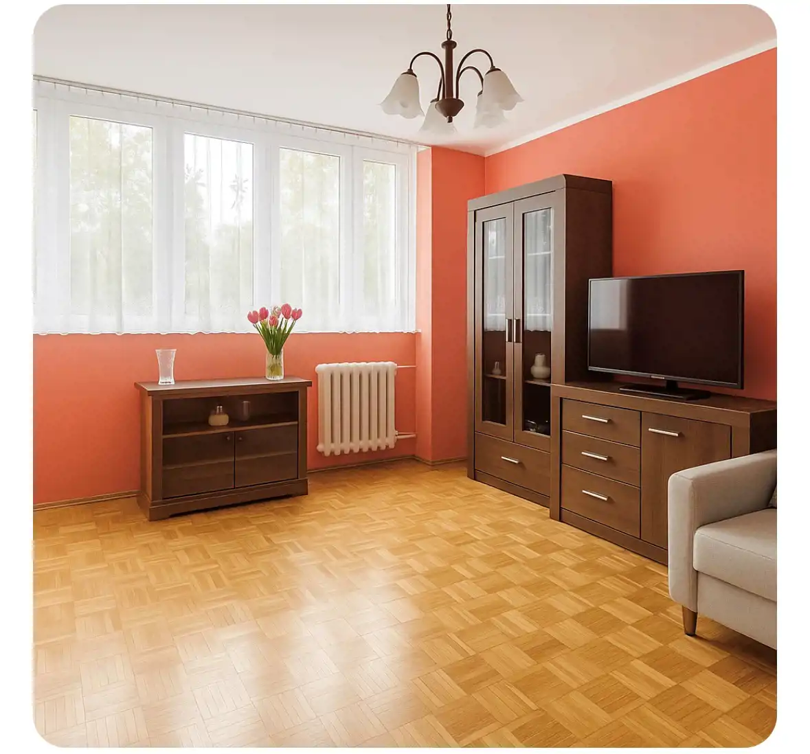Mieszkanie do końca było przedmiotem najmu, z racji lokalizacji nigdy nie stało puste dłużej niż 2 tygodnie, wymaga jedynie drobnego odświeżenia. Na podłogach dobrze zachowany parkiet/ płytki, na ścianach gładzie. Nieopodal bloku kilka sporych parkingów.
