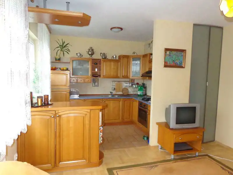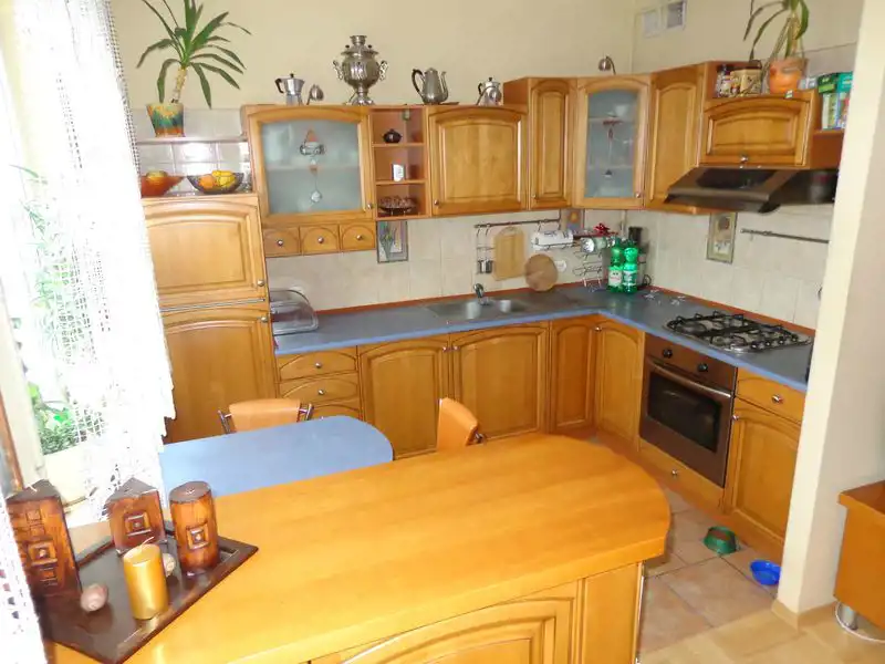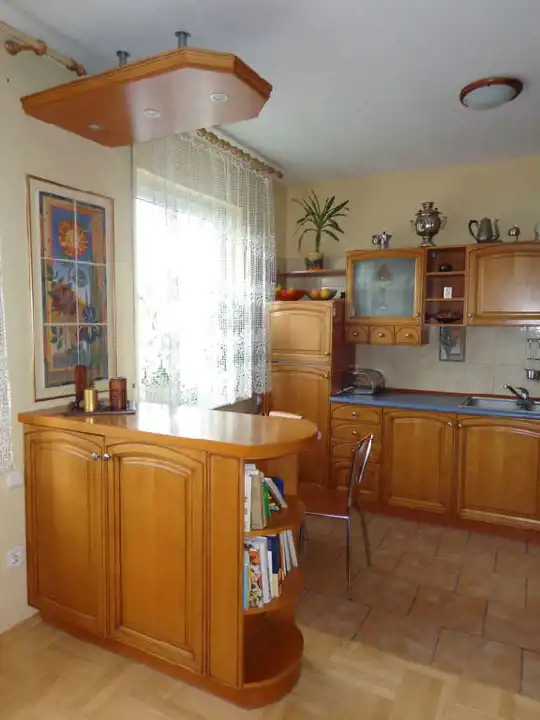 W cenie właściciel pozostawia zabudowę kuchni ze sprzętem AGD: piekarnik, płyta gazowa, lodówka.