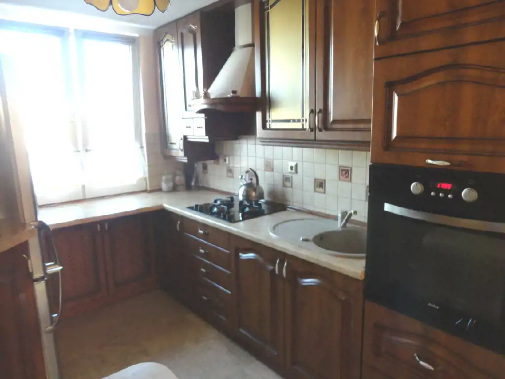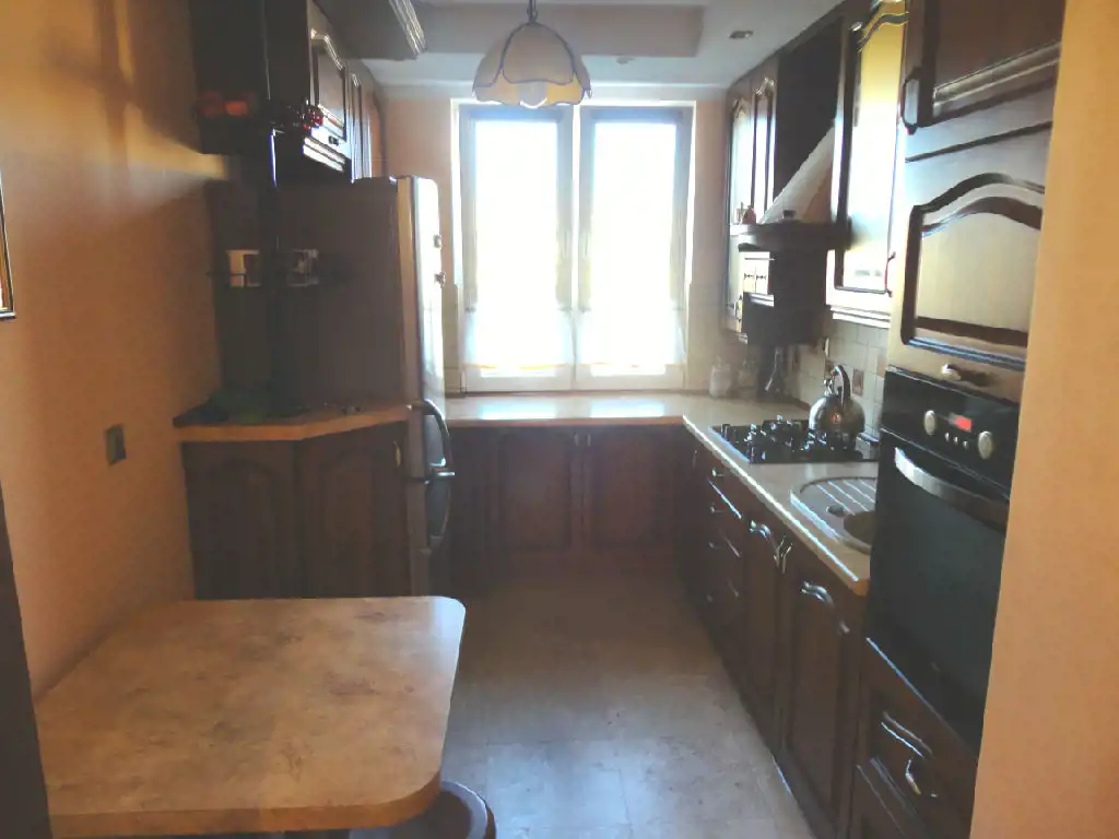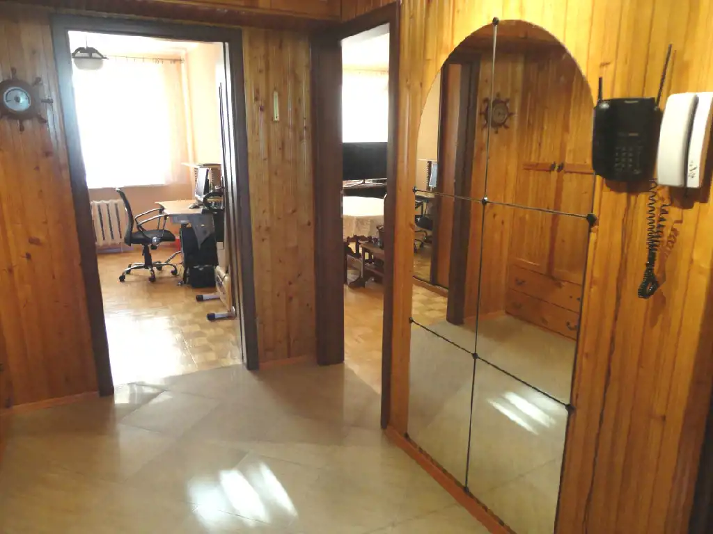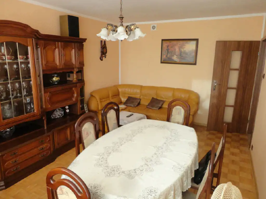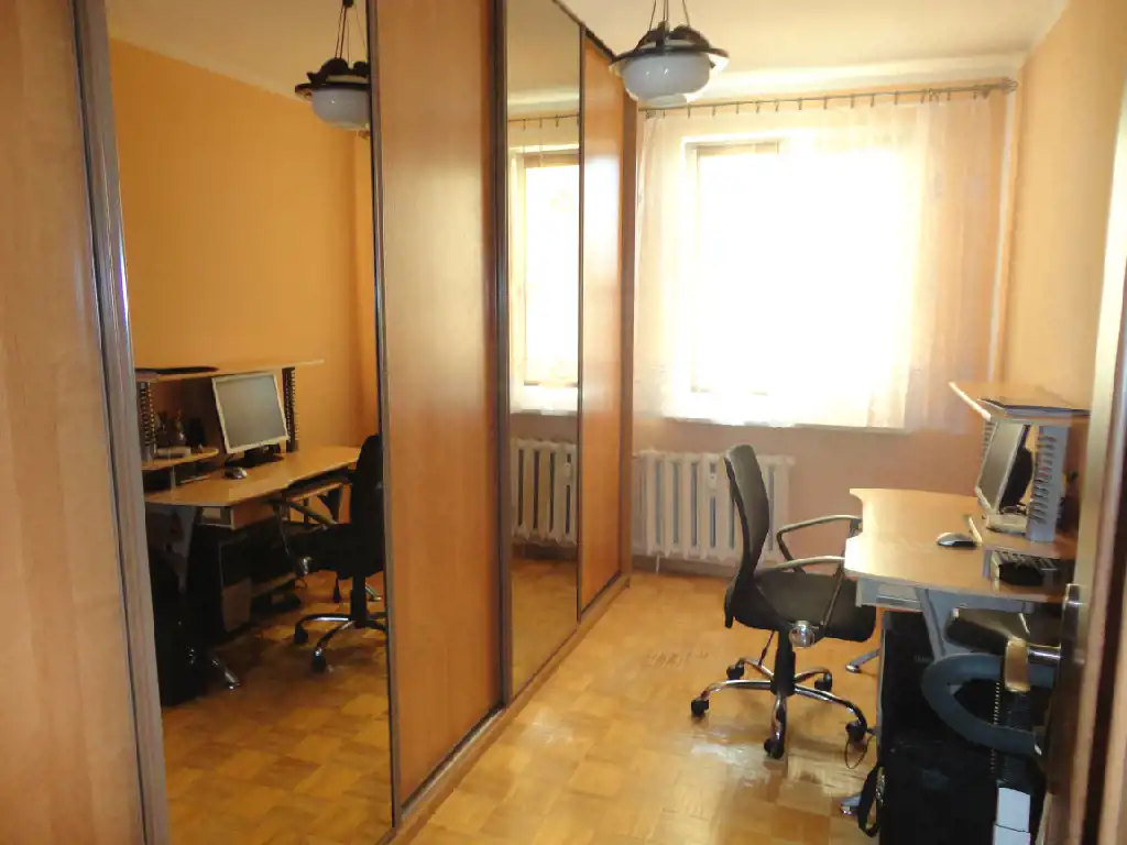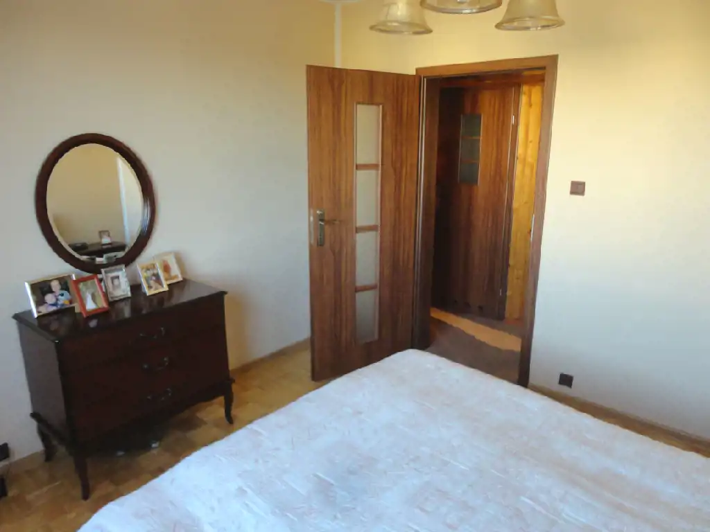 Mieszkanie ma ładny układ, każdy z pokoi jest oddzielny, przedpokój dość duży, co daje poczucie przestronności. Czyste, zadbane, na ścianach gładzie gipsowe, na podłogach parkiet oraz duże kafle.