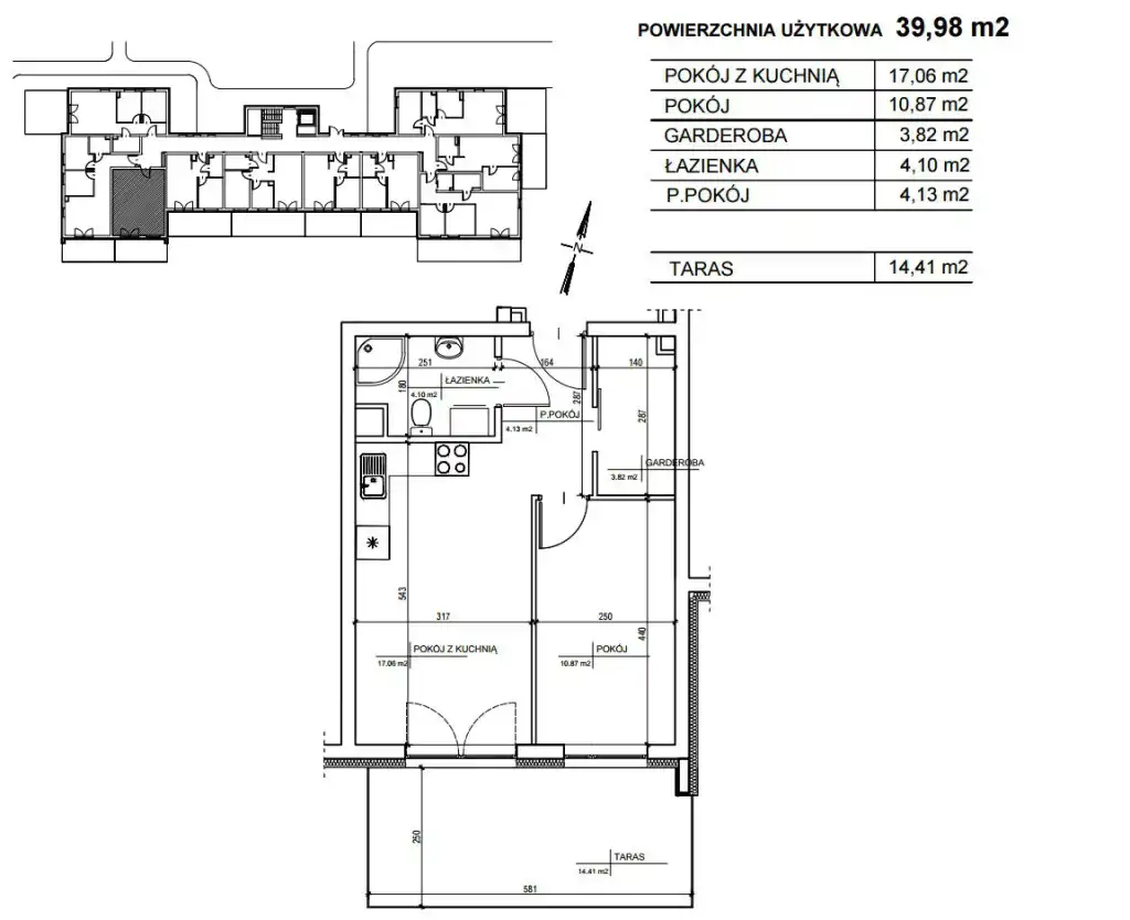 - Charakterystyka mieszkania 39.98 m2, 2 pokoje