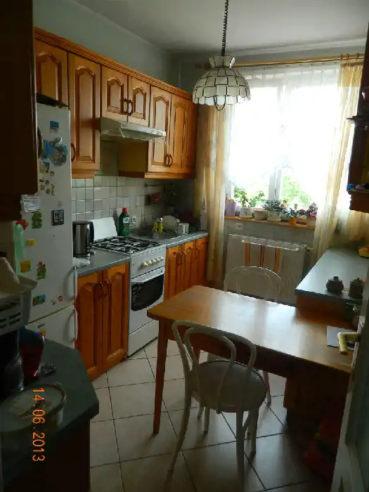 Mieszkanie w pełni rozkładowe 3-pokojowe z oddzielną widną kuchnią. Na uwagę zasługuje balkon, na który wejście jest z 2 pokoi. Ściany pokryte gładzią. Sprzedający pozostawia w cenie mieszkania zabudowę kuchenną oraz zabudowę typu Komandor w przedpokoju.