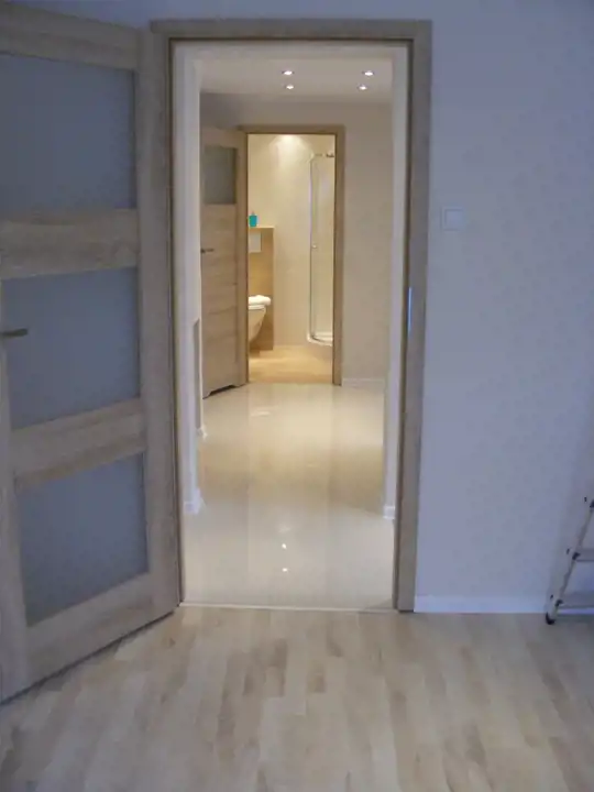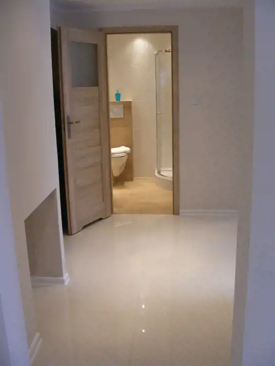 Na ścianach gładzie na podłogach panele oraz płytki.