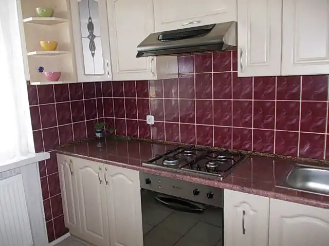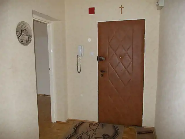 W skład mieszkania wchodzą trzy pokoje łazienka osobno z wc, kuchnia w zabudowie i przestronny przedpokój. W kuchni, łazience i wc mamy glazurę. Z salonu mamy wyjście na duży balkon, z którego rozciąga się widok na podwórko i inne budynki. Na podłodze w pokojach i przedpokoju mamy mozaikę parkietową, na ścianach tapety. Okna mamy drewniane z szybami zespolonymi. Sąsiedztwo spokojne, mieszkanie ciepłe.