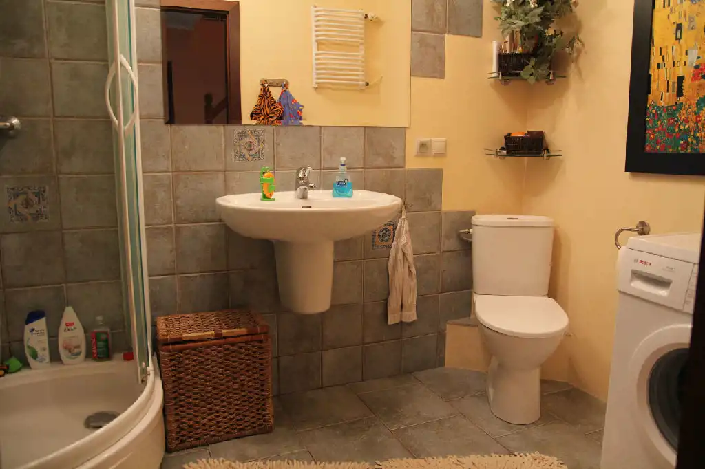 Mieszkanie ciepłe, słoneczne, nie wymagające nakładów finansowych. Na wyposażeniu pozostaje drewniana zabudowa kuchni wraz z granitowymi blatami, zabudowy komandor, zabudowa piętra oraz barku.