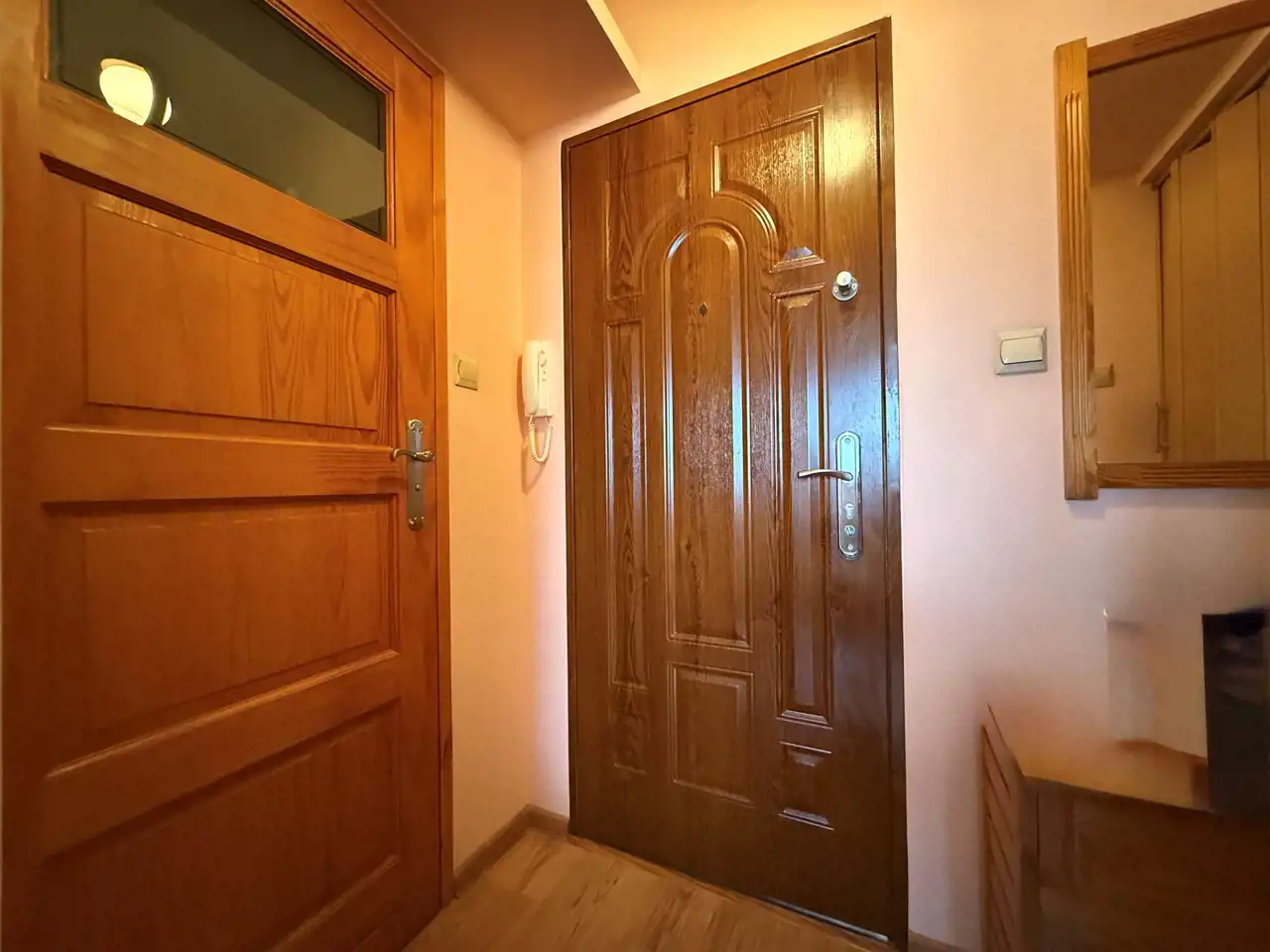 Wejście z klatki schodowej do zamykanego korytarza z dostępem zaledwie czterech lokatorów, widoczne na fotografii. Budynek posadowiony w doskonałej lokalizacji.