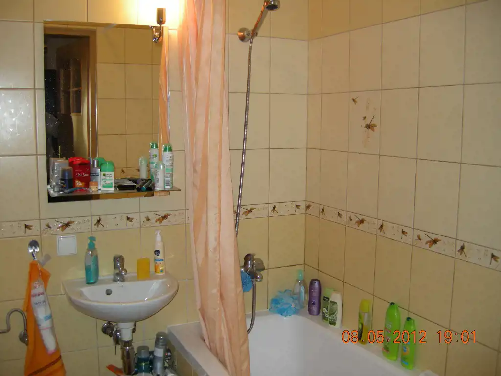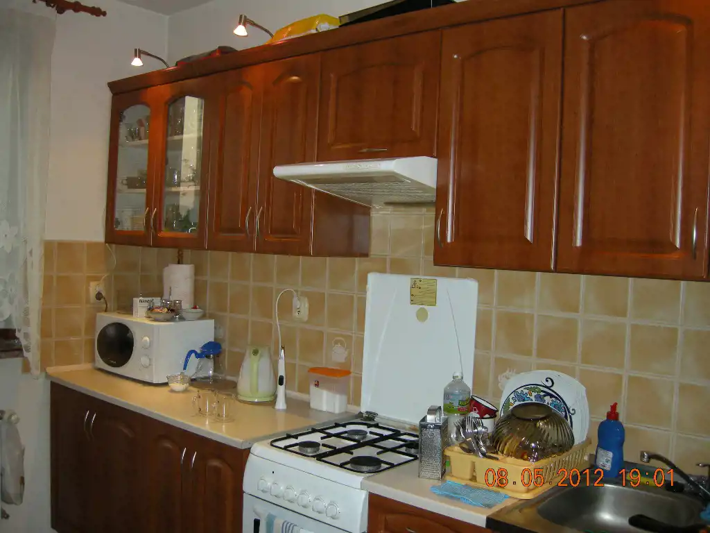 W drugim pokoju znajduje się sypialnia z łożem podwójnym oraz dwiema szafkami nocnymi. W łazience wanna, zlew oraz pralka (nowa). Kuchnia również w pełni wyposażona. Istnieje możliwość pozostawienia mebli i wyposażenia.