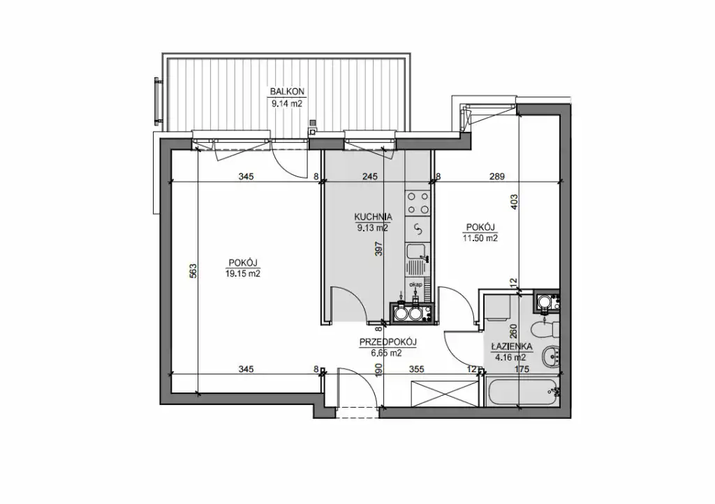 - Charakterystyka mieszkania 52.37 m2, 2 pokoje