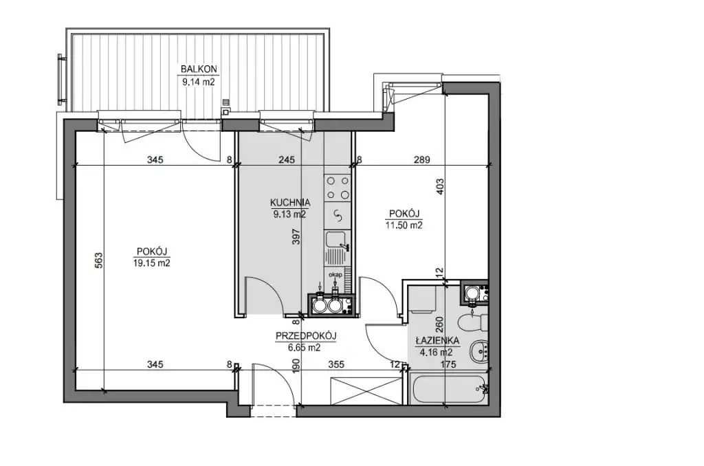 - Charakterystyka mieszkania 52.37 m2, 2 pokoje