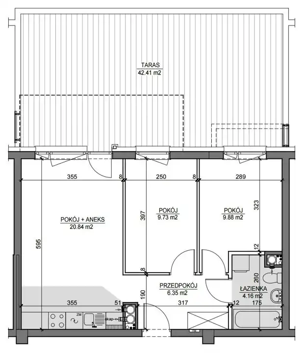 Z salonu prowadzi wyjście na duży TARAS: 42,41 m2.