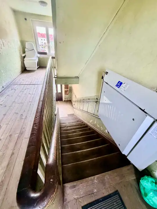 Nieruchomość znajduje się na I piętrze w dwupiętrowym budynku mieszkalnym z cegły. Do mieszkania przynależy piwnica.