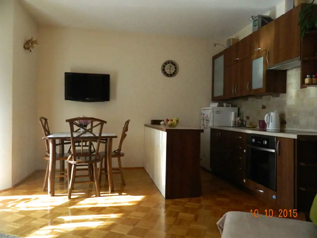Salon wraz aneksem kuchennym i balkonem wychodzą na stronę południową.