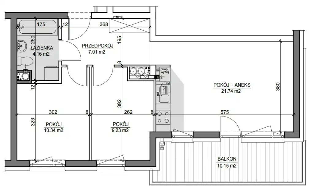 Z salonu prowadzi wyjście na BALKON: 10,15 m2.