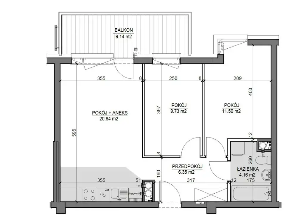 Z salonu prowadzi wyjście na BALKON: 9,14 m2.