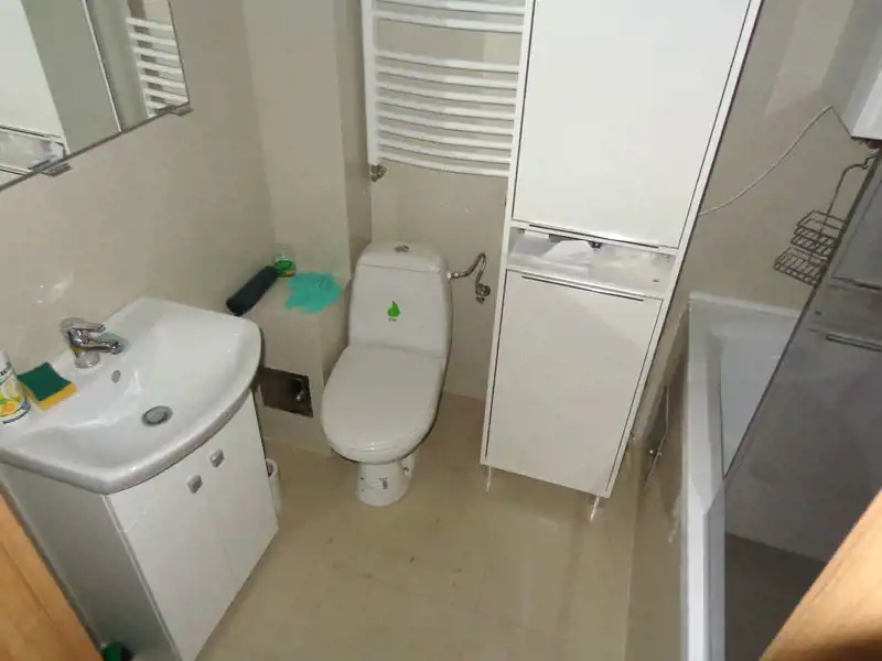Całość nowo wykończona. W pokojach na podłogach położone są panele. Na ścianach gładzie. Łazienka w nowoczesnej glazurze i terakocie. W łazience wanna z parawanem nawannowym, dzięki czemu dodatkowo spełnia ona rolę natrysku.