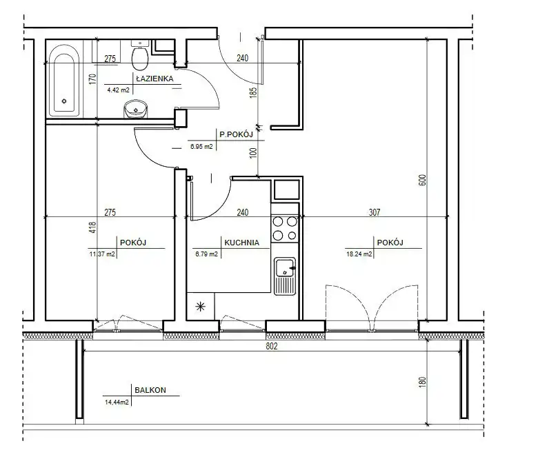 Mieszkanie posiada balkon o pow. 14,44 m2.