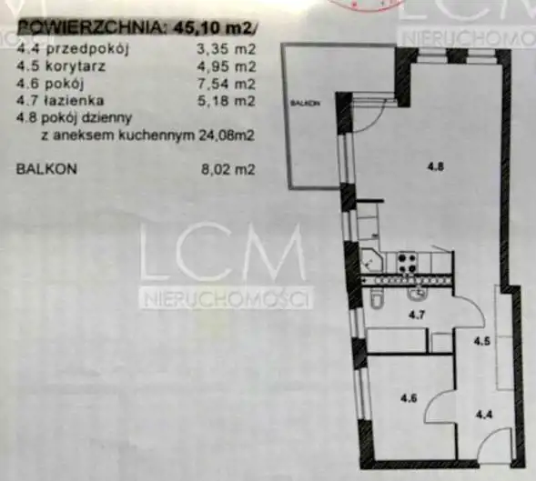 - Charakterystyka mieszkania 45.1 m2, 2 pokoje