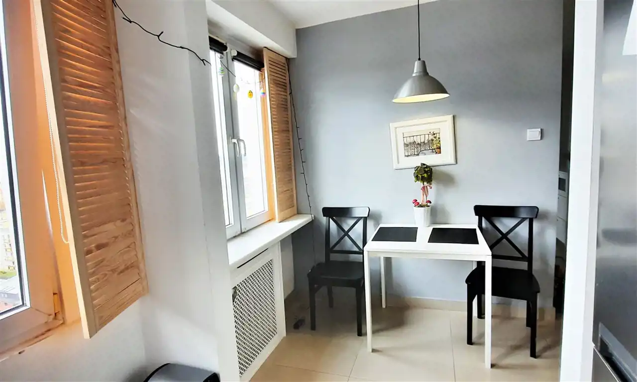Bydgoskie Przedmieście, przepiękny widok z 11 piętra, każdy z pokoi ma swój balkon, dwa pokoje 18m i 7,5m, powierzchnia 42,7 m2, na której znajduje się duży pokój dzienny, oraz sypialnia, przedpokój, łazienka z WC oraz oddzielna kuchnia. Zabudowa kuchni wraz ze sprzętem AGD jest w cenie mieszkania. Meble w całym mieszkaniu stanowią jego wyposażenie i pozostają dla nowych właścicieli. Z salonu jak również z małego pokoju wyjście na balkon z którego rozpościera się widok na panoramę miasta, ekspozycja zachodnia. Mieszkanie jednostronne. Położone na jedenastym piętrze w budynku z cichobieżną windą. Do mieszkania przynależy komórka lokatorska. Za szlabanem wydzielony teren parkingu dla mieszkańców budynku oraz liczne miejsca postojowe wokół.