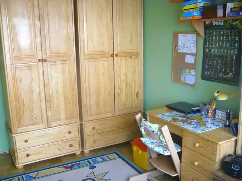 Na ścianach w pokojach położone zostały gładzie, na podłogach znajduje się bardzo zadbana mozaika parkietowa.
