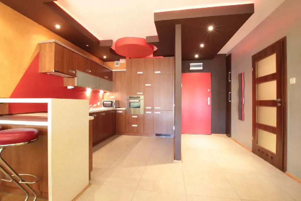 Mieszkanie nie wymaga żadnego wkładu finansowego, wykończone jest wysokiej klasy materiałami. Na podłogach położono deskę jesionową i terakotę. Na ścianach gładzie gipsowe, kamień naturalny oraz glazura. W każdym z pomieszczeń podświetlane sufity, co tworzy niepowtarzalną atmosferę.
