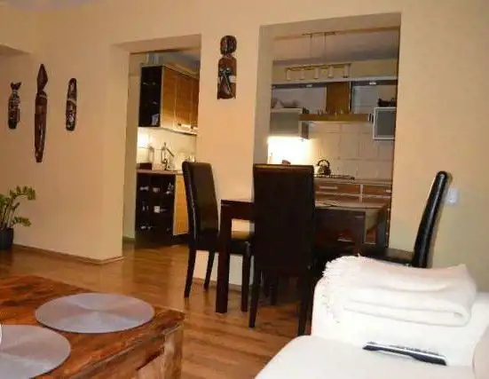 W mieszkaniu na podłogach zamontowane są panele podłogowe wysokiej klasy, na ścianach gładzie oraz tynk strukturalny, w łazience glazura - terakota, w sypialni zabudowa typu komandor, kuchnia zabudowana meblami w naturalnym fornirze z pełnym wyposażeniem.