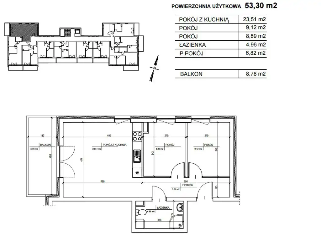 - Charakterystyka mieszkania 53.3 m2, 3 pokoje