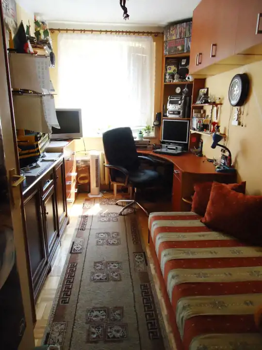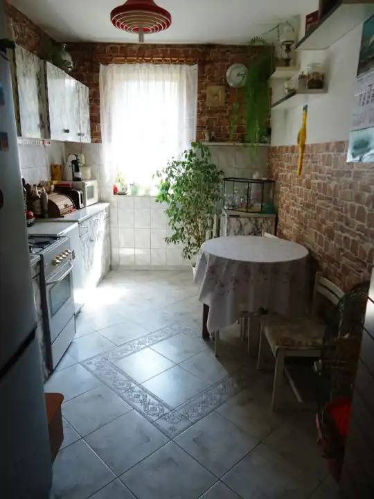Lokal o powierzchni 79m2 usytuowany na 1 piętrze w czteropiętrowym bloku, w skład którego wchodzą 4 pokoje, z czego jeden jest przechodni (wejście z kuchni). Z największego pokoju wyjście na duży balkon. Do mieszkania przynależy piwnica.