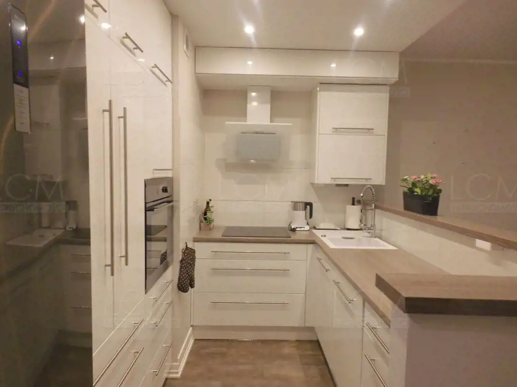 Nowoczesna zabudowa kuchenna wyposażona została w najwyższej klasy sprzęt AGD: (zmywarka, lodówka, płyta indukcyjna, piekarnik, kuchenka mikrofalowa, okap).