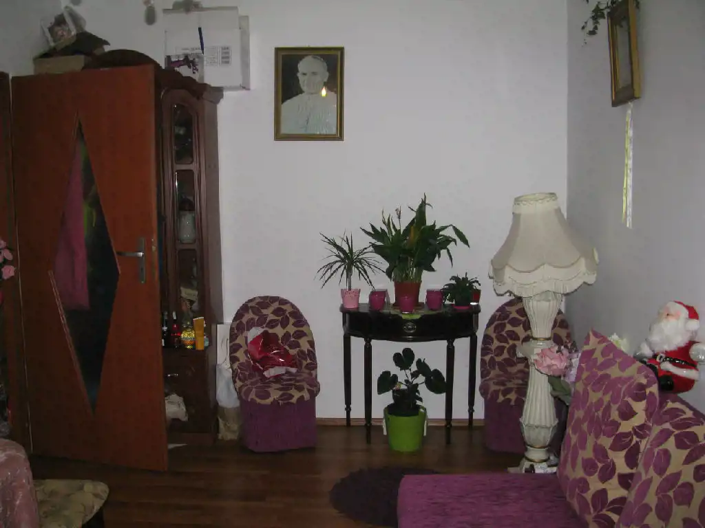 Mieszkanie składa się z trzech pokoi, kuchni, łazienki z wc,