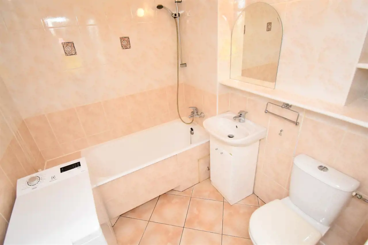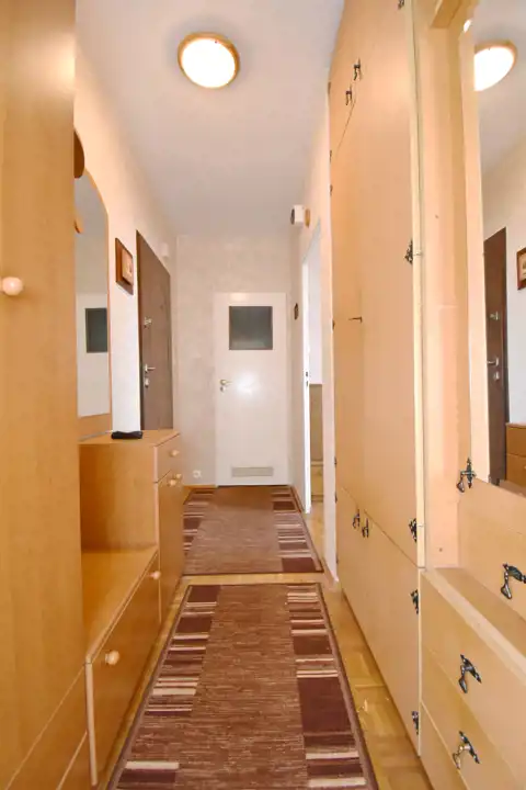 Do mieszkania prowadzi dodatkowy korytarzyk z klatki, do dyspozycji z jednym tylko sąsiadem. Korytarz zamykany jest na klucz więc możesz tu trzymać np rower.