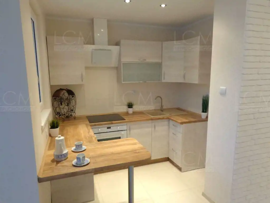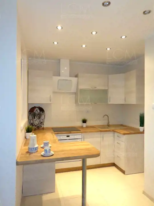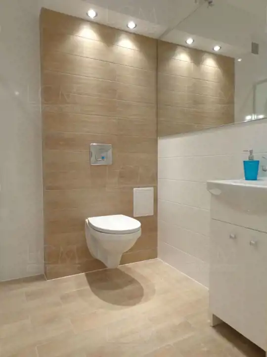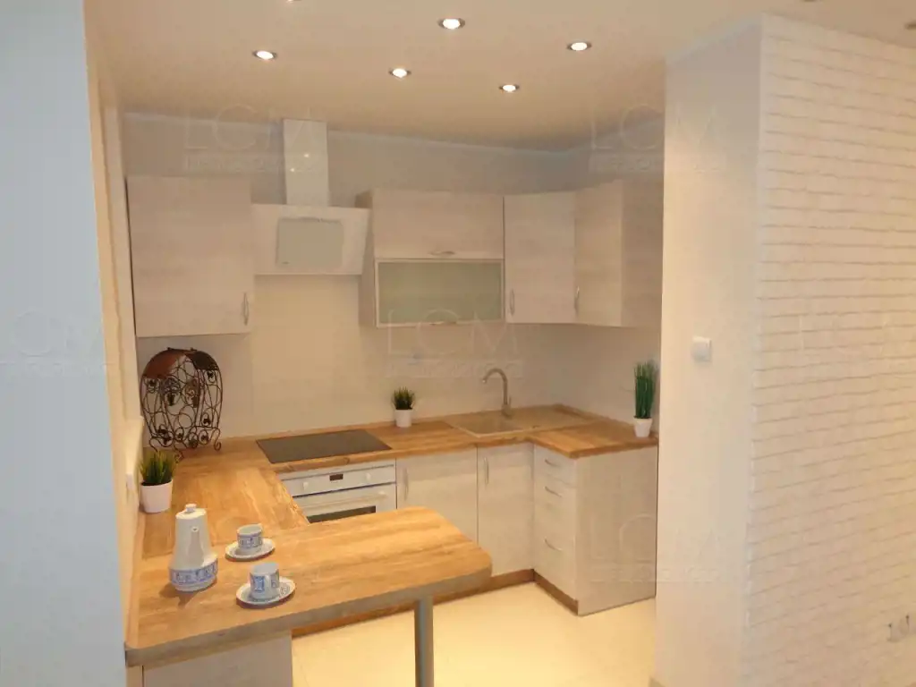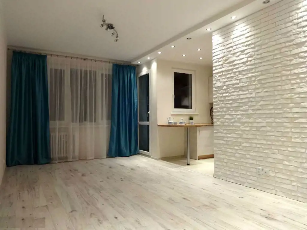 Wymienione zostały wszystkie instalacje. Na podłogach położone zostały panele. Na ścianach gładzie oraz ozdobny kamień. Sufity podwieszane z ledowym oświetleniem. Łazienka z WC w nowoczesnej glazurze i terakocie. Kuchnia także w glazurze i terakocie, z ładną zabudową kuchenną w stonowanych barwach.