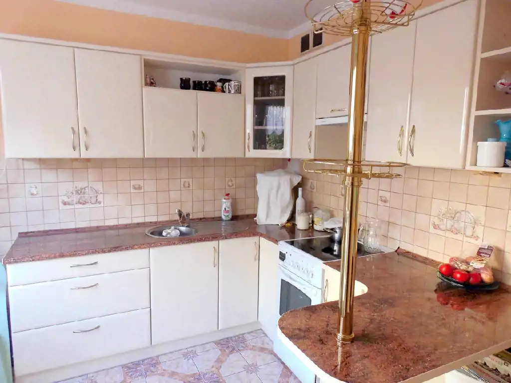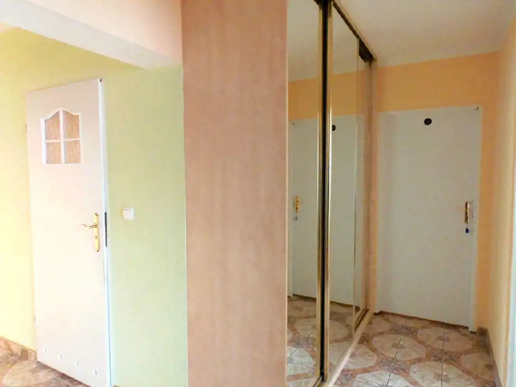 Mieszkanie ma praktyczny rozkładowy układ pomieszczeń. Na całkowitą powierzchnię składają się 3 oddzielne pokoje, jasna kuchnia z wyjściem na taras, łazienka razem z wc oraz przedpokój. Z salonu prowadzi wyjście na duży balkon od strony wschodniej. Mieszkanie nie wymaga dużych nakładów finansowych. Na podłogach położono panele oraz terakotę, na ścianach gładzie gipsowe i glazurę. W cenie mieszkania pozostaje zabudowa kuchenna oraz zabudowana trzy-drzwiowa szafa typu Komandor w przedpokoju.