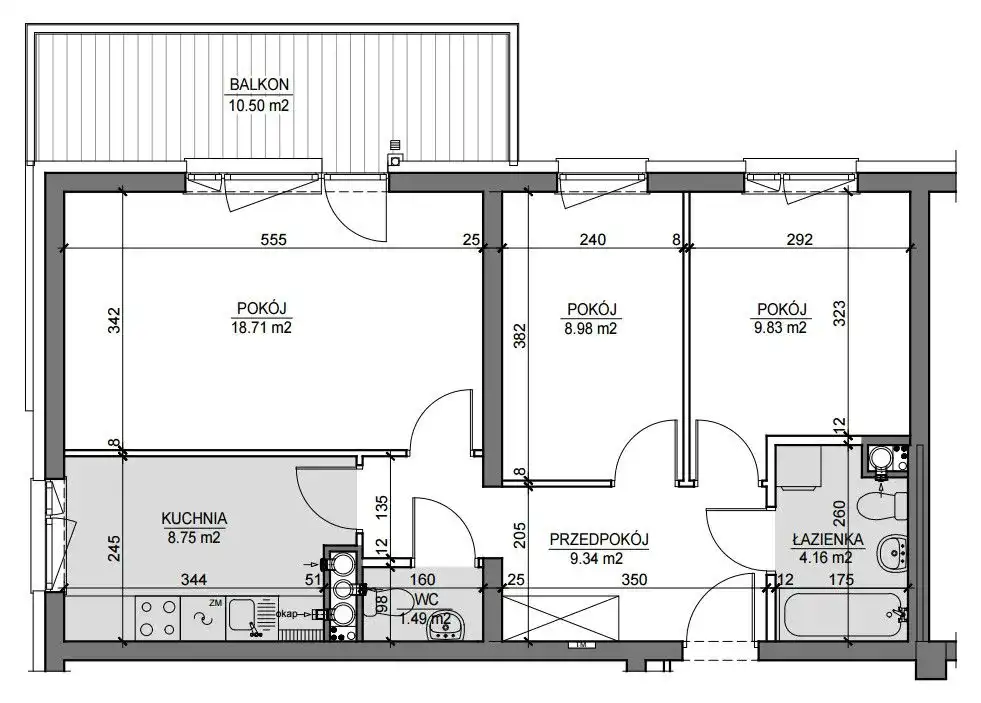 Z salonu prowadzi wyjście na BALKON: 10,50 m2.
