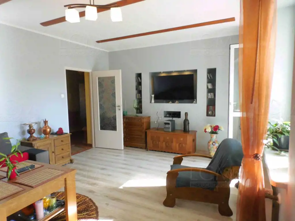 Z salonu prowadzi wyjście na duży słoneczny balkon.