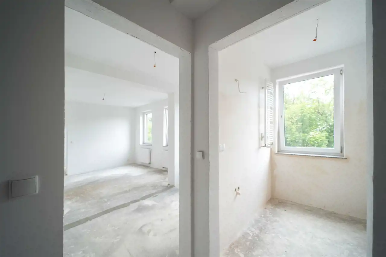Na ścianach gładzie/ ściany malowane w kolorze białym ,instalacje wodno- kanalizacyjne , elektryczne i ogrzewania.