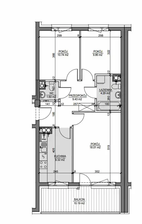 Z salonu prowadzi wyjście na BALKON: 10,19 m2.