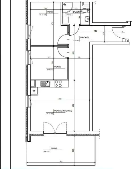 Mieszkanie posiada TARAS: 14,41 m2.