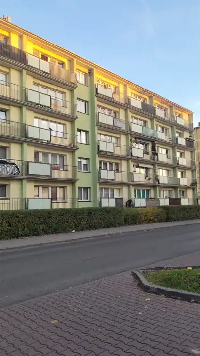 Budynek został wybudowany w 1964 roku z cegły, okna w mieszkaniu PCV. Układ pomieszczeń funkcjonalny i ustawny. Mieszkanie bardzo ciepłe, słoneczne - środkowe, ocieplony blok. Zostały wymienione w całym bloku piony wodno-kanalizacyjne. W salonie na podłodze wykładzina a pod nią parkiet, w sypialni parkiet, w kuchni, łazience i przedpokoju położone są płytki. Kuchnia posiada meble, kuchenkę gazową z piekarnikiem, lodówkę i pralkę. W łazience wanna.