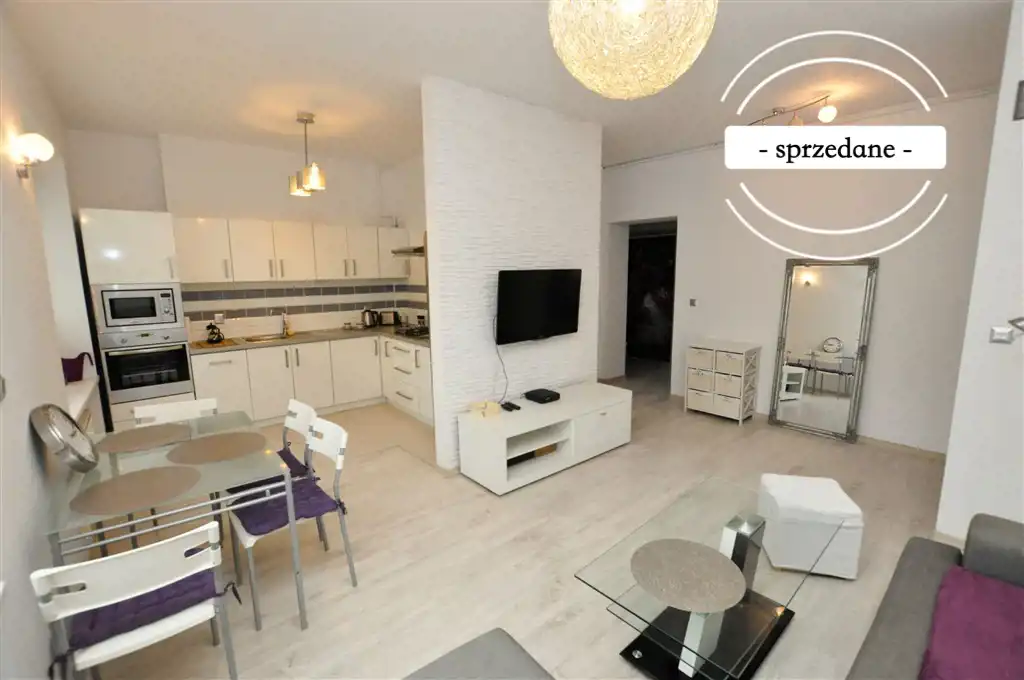 Mieszkanie sprzedawane jest z całym widocznym umeblowaniem oraz wyposażeniem. Obecnie jest ono przedmiotem najmu - także jeśli chcesz kupić gotowca inwestycyjnego z zweryfikowanymi Najemcami (mieszkają oni już tam kilka lat i nie ma z nimi żadnych problemów) to jest to idealna oferta dla Ciebie.