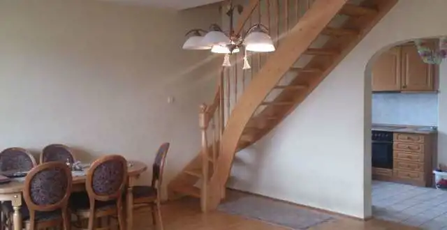 Mieszkanko jest ciepłe i przytulne. Na dolnej kondygnacji znajduje się przestronny salon połączony z kuchnią, toaleta oraz przepokój. W salonie znajduje się duży balkon od strony zachodniej. Na górnej kondygnacji są 3 pokoje, przedpokój z wbudowaną szafą komandor oraz łazienką. Do mieszkania przynależy również piwnica.