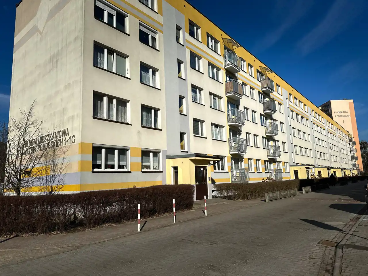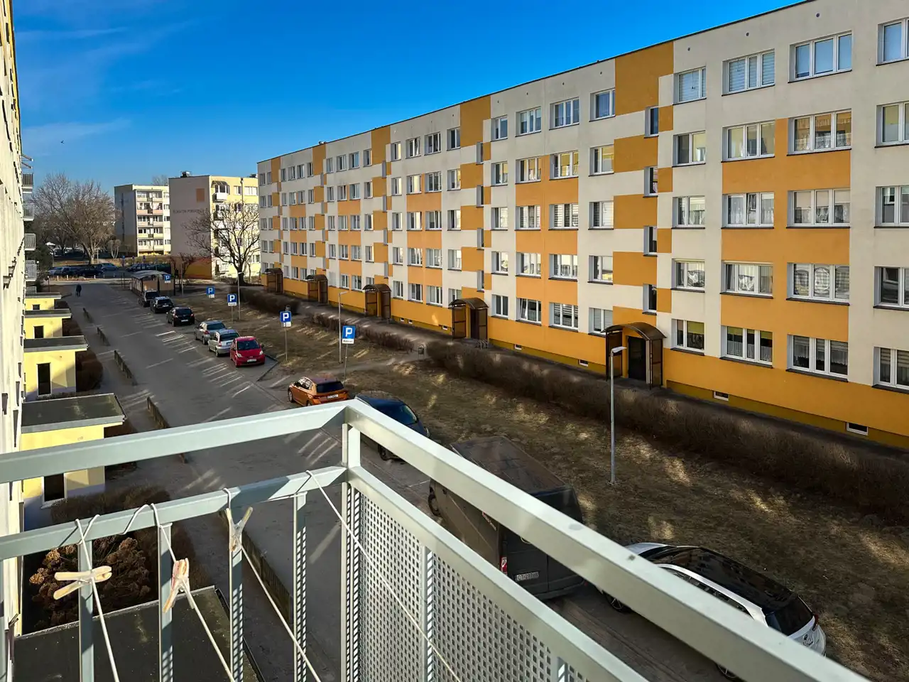 -od strony zachodniej bardzo duża odległość między blokami