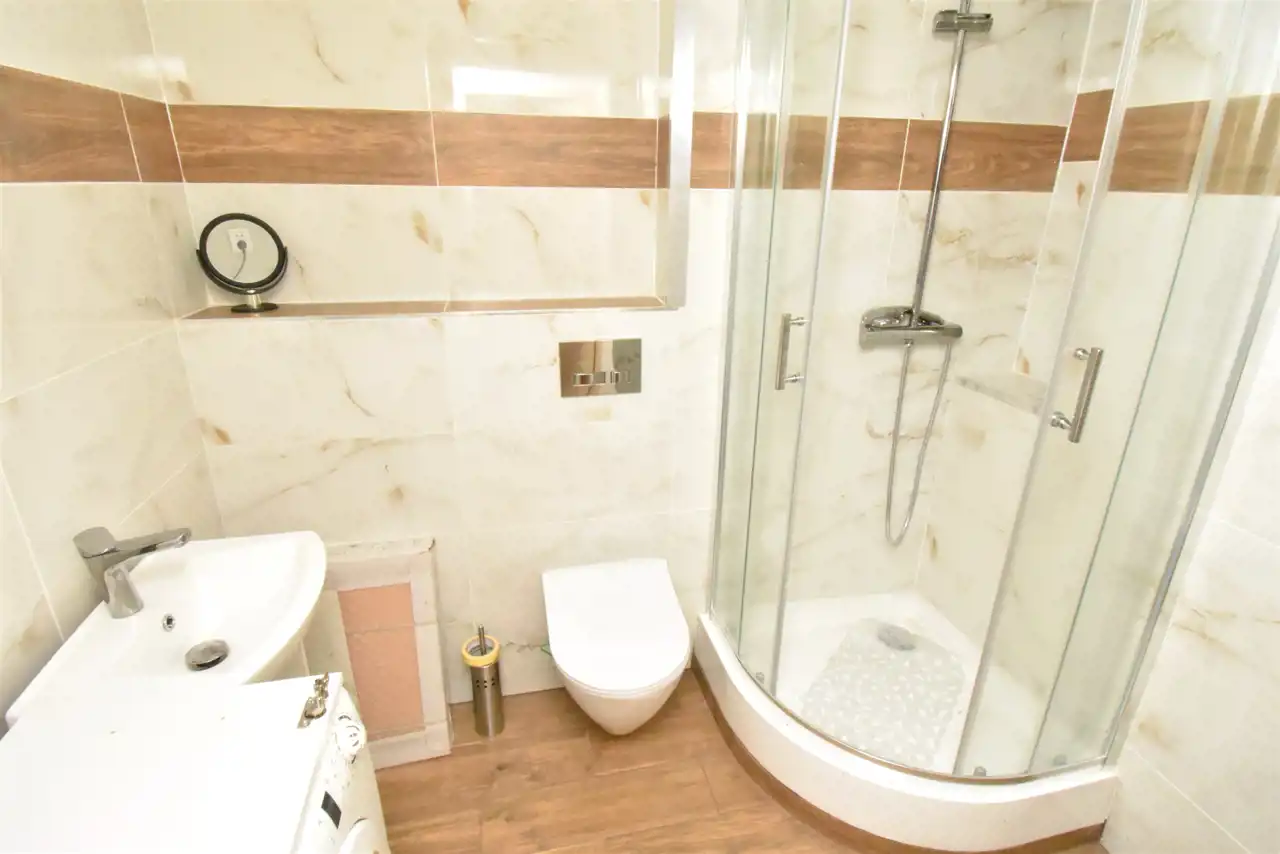 W łazience przeprowadzono remont. Wymaga jednak dokończenia, delikatnych poprawek.