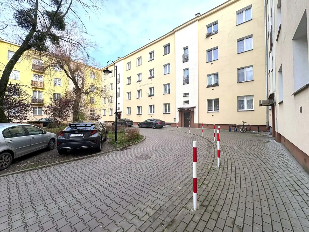 usytuowane na pierwszym piętrze bloku z cegły.