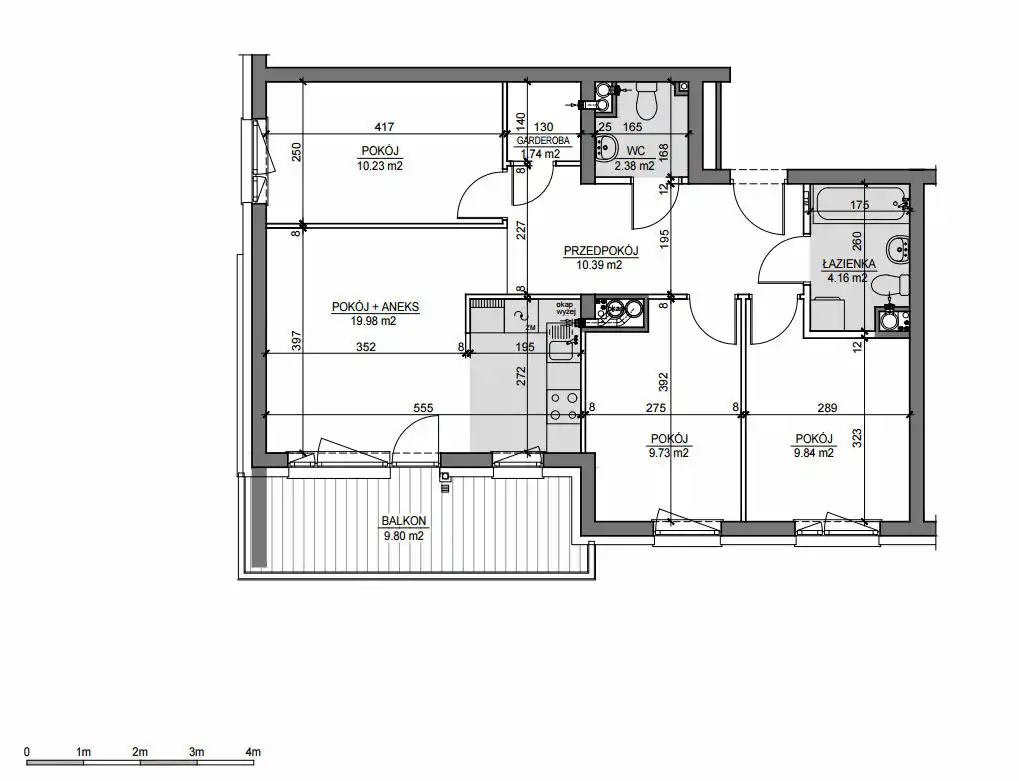 Z salonu prowadzi wyjście na BALKON: 9,80 m2.